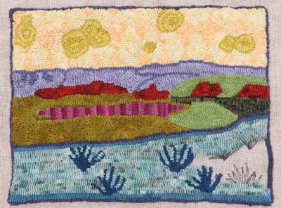 Carol has almost finished the rug she started in Briggita Phy's class. She took out some of the sagebrush and she is almost finished. I absolutely love her colors! This was done primarily out of leftover worms.